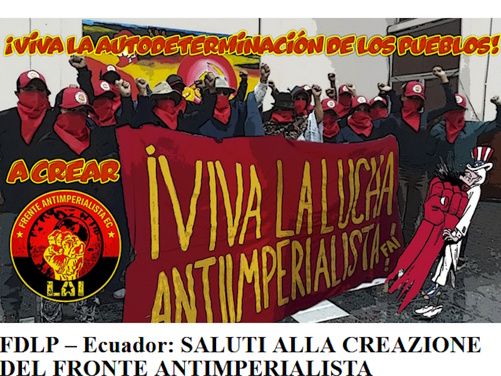 Il Fronte di Difesa delle Lotte del Popolo in Ecuador saluta con fermezza la creazione del Fronte Antimperialista dell’Ecuador, uno strumento prezioso di articolazione politica e sociale per l’unità della classe operaia, dei giovani, dei contadini e dei popoli oppressi nella lotta indomita e duratura contro l’imperialismo di ogni tipo, principalmente quello yankee, e contro i suoi meccanismi interni: la grande borghesia, i grandi proprietari terrieri, i loro governi fantoccio e l’opportunismo della sinistra addomesticata.